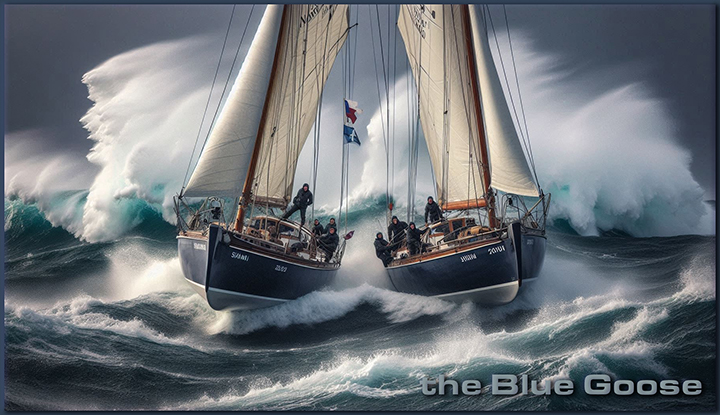 Hank laughed at that then held on tight as he tried to get down the companionway ladder without breaking his skull. A big wave broke and The Blue Goose lurched to the right, heeling about 50 degrees before righting again, and he used the lull to get down to the chart table and braced in the seat behind the desk before the next wave hit.