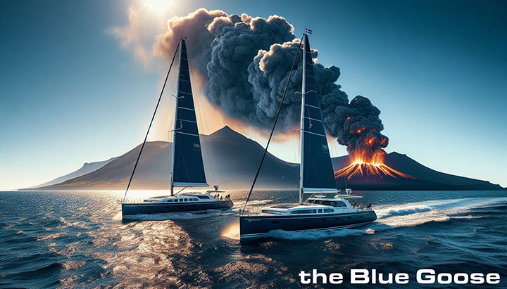 “I’ve just talked to one of the volcano observatories,” she began, “and they advise we head well offshore before traversing that plume.”